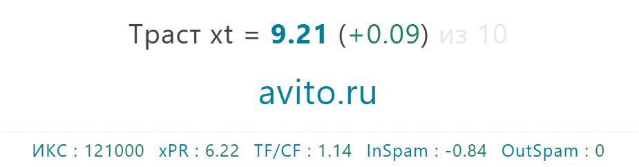 ИКС может принимать значения от 0 до нескольких сотен тысяч. Для примера: у крупных маркетплейсов вроде Авито показатель превышает 120 000, у средних интернет-магазинов — от 500 до 5 000, а у небольших информационных сайтов — от 10 до 500.