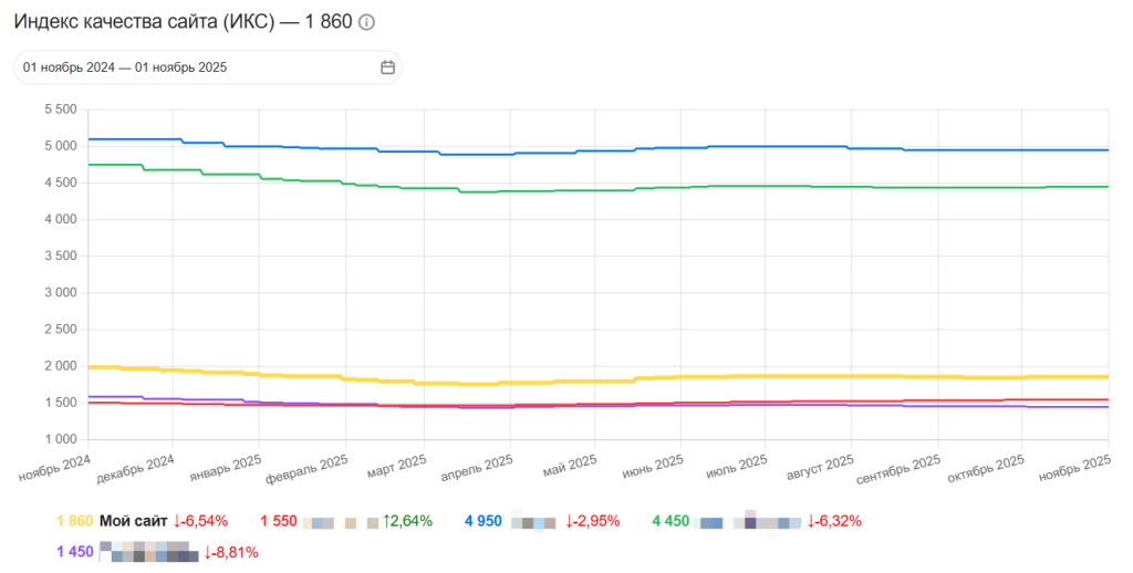 Регулярно проверяйте ИКС в Яндекс Вебмастере и анализируйте причины изменений. Если показатель снижается, это может быть связано с сезонностью трафика, техническими проблемами, падением качества контента или санкциями поисковой системы.